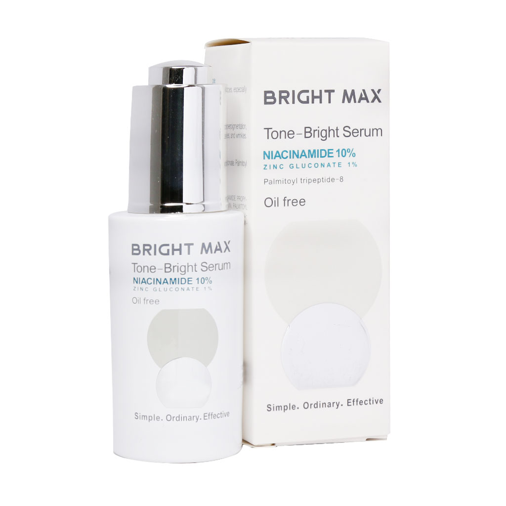 سرم روشن کننده و ترمیم کننده نیاسینامید برایت مکس یک سرم نیاسینامید ایرانی و محصول شرکت کیاکام فارمد است. نیاسینامید برایت مکس حاوی ۱۰ درصد نیاسینامید، ۱ درصد زینک گلوکونات، پالمیتوئیل تری پپتید-۸ و سایر ترکیبات است.